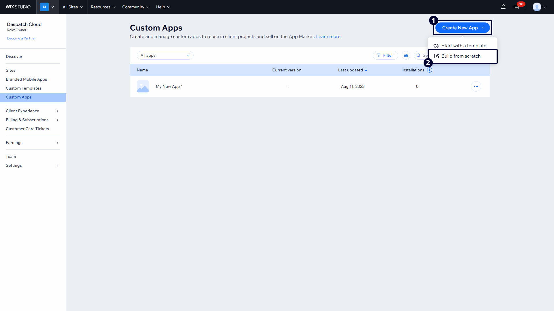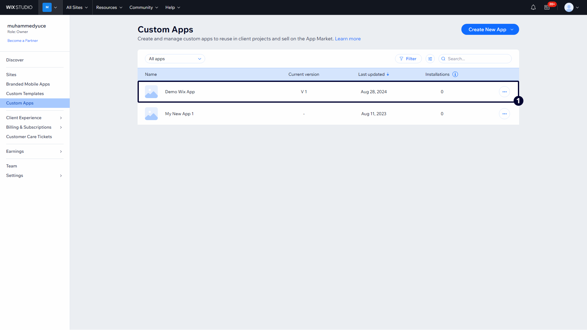 Once you've completed the app creation, return to the Wix Custom Apps page again.